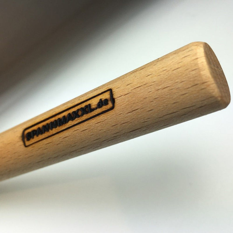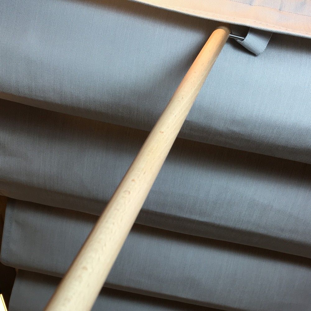 Mit dem Bedienstab aus Buche lassen sich die Wolkenbahnen verschieben. 100 cm ist er lang, 16 mm dick, versehen mit einem Haken, so dass man damit leicht in den V-Griff fassen kann, der in alle Wolkenbahnen von SPANNMAXXL eingearbeitet wird.